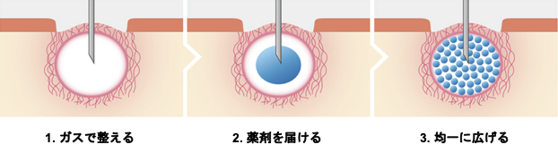 ガスでできたスペースに、肌の状態に合わせた薬剤を注入します。